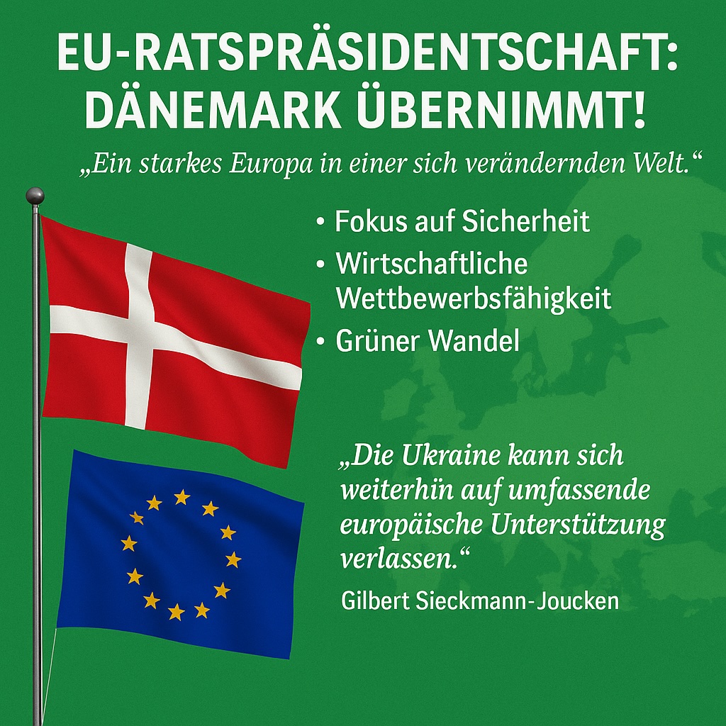 Am 1. Juli hat Dänemark turnusgemäß die EU-Ratspräsidentschaft übernommen – unter dem Motto „Ein starkes Europa in einer sich verändernden Welt“. Die dänische Präsidentschaft setzt dabei klare Schwerpunkte: Sicherheit, Wettbewerbsfähigkeit und ein grüneres Europa.