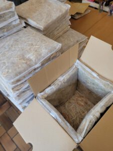 Neben dem klassischen Hofladen setzt „Ein Stück Land“ auf innovative Vermarktungswege: Kund:innen können die Produkte auch online bestellen und bundesweit liefern lassen. Dabei kommt ein ökologisch durchdachtes Verpackungssystem zum Einsatz: Dämmende Strohakkus in biologisch abbaubarer Hülle sowie Trockeneis sorgen dafür, dass die Ware über mehr als 48 Stunden gekühlt bleibt – ganz ohne Plastikmüll.